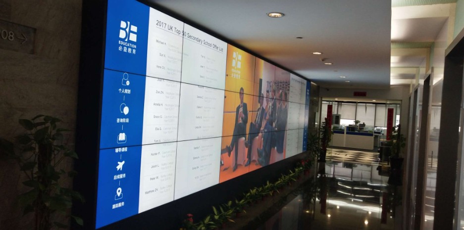 素希用21臺(tái)三星55寸液晶拼接屏打造3*7拼接的上海必益教育培訓(xùn)案例: